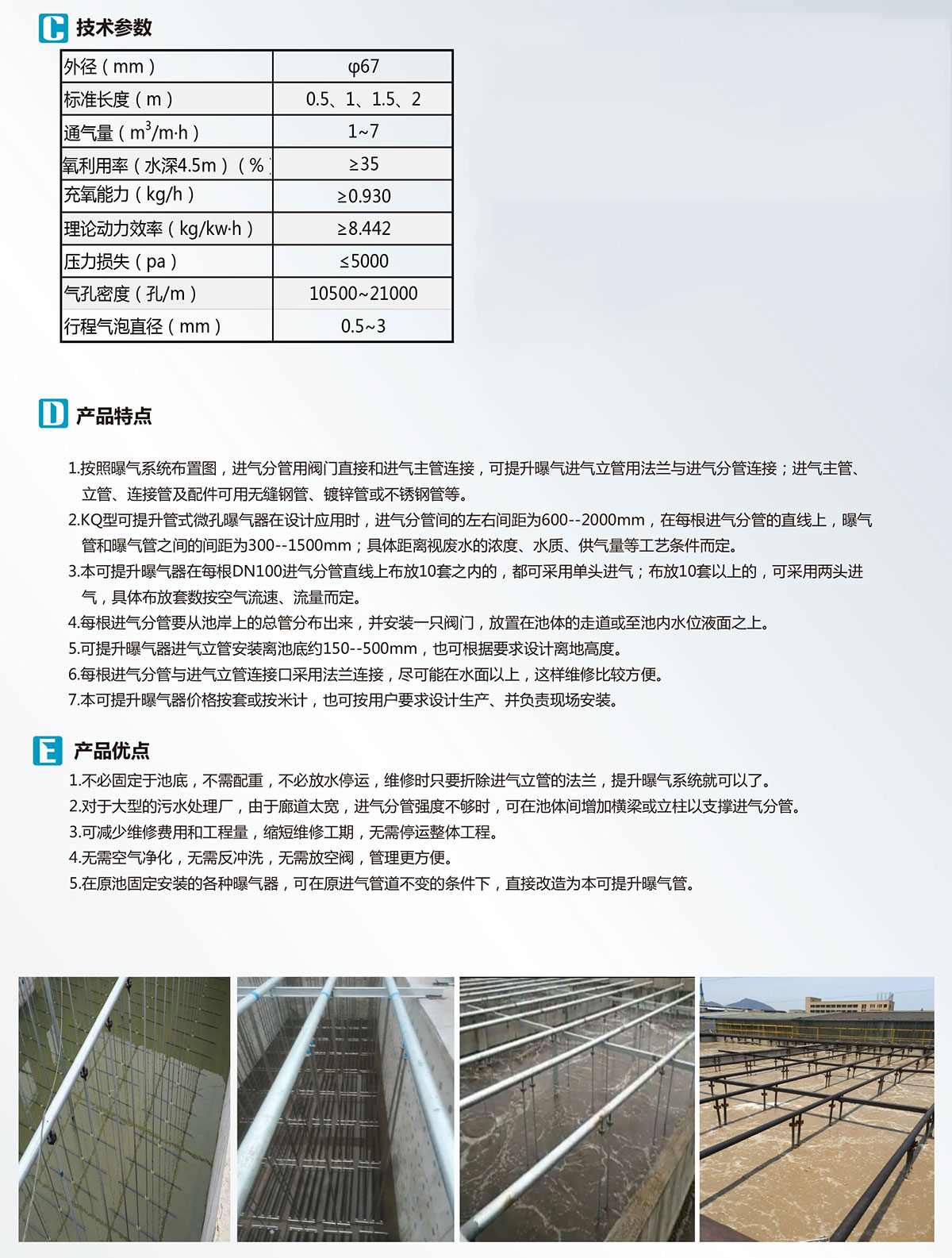 KQ型可提升管式微孔曝氣器